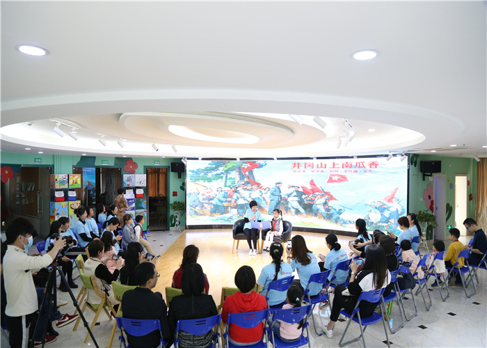活动现场,以“党在我心中”为主题的亲子阅读活动正如火如荼地开展。来自凤凰城社区的宇燕家庭和竹苑社区的游晔家庭以亲子诵读的方式,用动情的语言,深情的表达为大家分别讲述了红色故事《井冈山上南瓜香》和《井冈山走出的“皮萝将军”》,带领大家重温井冈山斗争历史,感悟井冈山精神,一字一句,抑扬顿挫中流淌的是老一辈的回忆,也是少年一代心中的星星之火。
